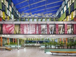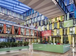 Design Amazon Courtu připomíná jihoamerickou džungli. V atriu zaujmou různobarevné vnitřní žaluzie, které se automaticky stahují podle pohybu slunce. Unikátní atmosféru v celém objektu dotváří rozmanitá zeleň a vodní prvky. V oknech jsou skla s ochranou proti slunečnímu záření, tím účinně snižují jeho tepelný dopad.